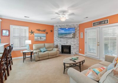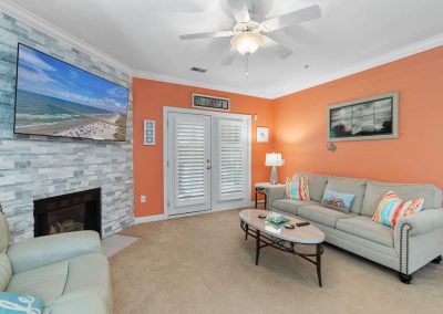 This 3 BR, 2.5 bathroom Osprey Ridge end unit condo in the vibrant community of Sea Trail is ready for a new set of owners! With an open and airy floor plan, massive porch with EZ Breeze windows, and panoramic views of the golf course and pond, this unit is sure to impress. These conscientious owners have taken excellent care of the home and made several improvements. The primary suite bathroom was updated in 2024 with a tiled, walk-in shower, new toilet, mirrors, countertops and fixtures. All kitchen appliances, washer and dryer were new in 2024 as well. The water heater was replaced in 2025. The fireplace surround, lighting and paint are other thoughtful upgrades. Two exterior storage closets allow for bicycle or beach gear housing.